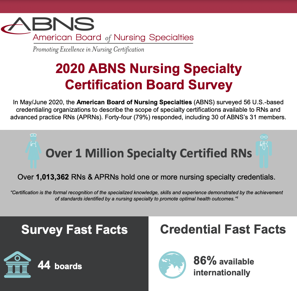 Working with the American Board of Nursing Specialties (ABNS), Dorsey Communications designed, administered and compiled the results of this first-of-its-kind survey of US-based nursing specialty credentialing organizations, and then created promotional materials, including this infographic, to publicize the results.